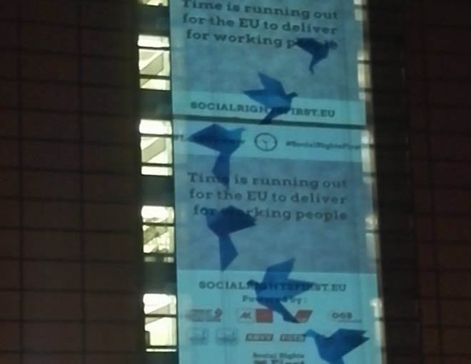 I forbindelse med næste uges topmøde har den europæiske fagbevægelse skruet op for sin kampagne for et lønløft til lønarbejderne i Unionen. Det sker sideløbende med, at EFS stiller krav til den ”Sociale Søjle” som EU-toppen sætter i søen i næste uge. EFS forsøger op til topmødet at mobiliserer bag kravene om at få sat ”kød” på den sociale søjle, som ikke er juridisk bindende for medlemslandene. Søjlen er ”kun” en politisk erklæring, som den danske beskæftigelsesminister tørt konstaterede i sidste måned, da den blev godkendt på et beskæftigelsesministermøde i EU.