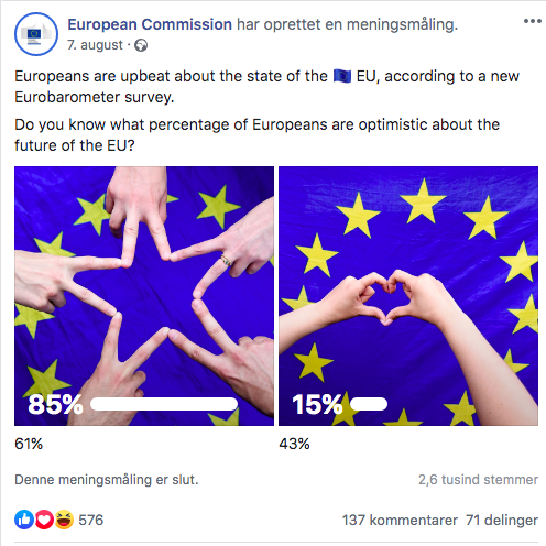 I Danmark har Eurobarometers svarprocenter svinget mellem 23 og 28 procent fra 2016 til 2018.