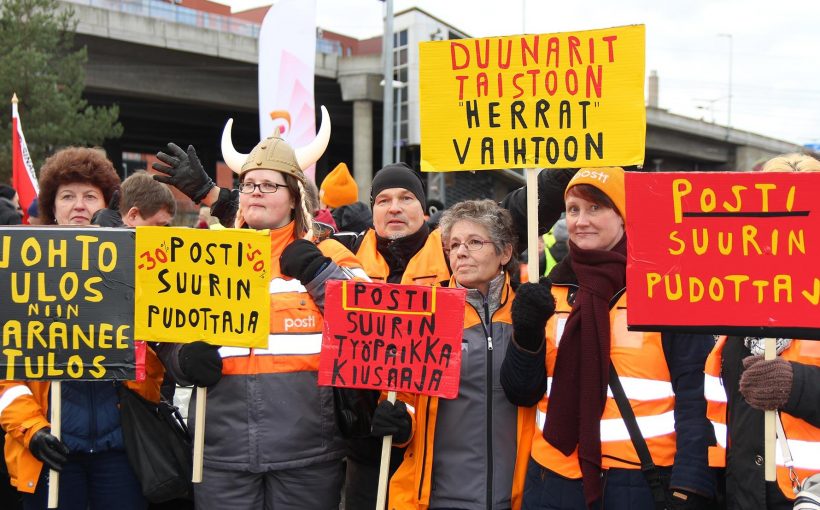 En omfattende sympatikonflikt med 700 postarbejdere lammer store dele af den kollektive trafik og havnene i Finland