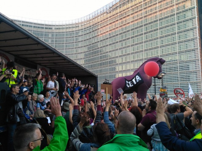 Oven på weekendens kæmpe demonstrationer i Tyskland og Østrig mod TTIP og CETA fulgte Bruxelles i går trop med omkring 15.000 på gaden med et klar budskab til EU-kommissionen om at stoppe TTIP og CETA.