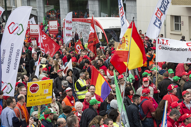 Mens både den europæiske og amerikanske fagbevægelse siger nej til handelsaftale som giver virksomheder mulighed for at sagsøge stater, så