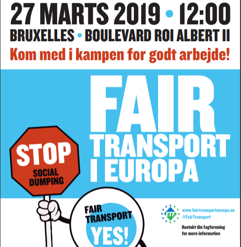 I ugen fra 22. til 27 marts vil ETF mobiliserer lastbilchauffører fra hele Europa til protestaktioner mod social dumping og for bedre vilkår. Det sker samtidig med, at EU’s transportministre mødes i Bukarest. Protesterne kulminerer med en demonstration i Bruxelles d. 27. marts, men ifølge ETF så vil der være mere end 100 markeringer i 18 lande. Chaufførerne planlægger blokader med konvojer af lastbiler rundt om i EU.