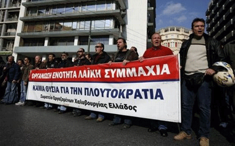 | Græske metalarbejdere appellerer om international støtte i deres månedlange kamp mod lønsænkning og fyringer |