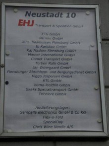 Og viste et eksempel på en postkasse, hvor adskillige danske transportfirmaer havde samme adresse i smal gade i Flensburg, hvor der aldrig kommer en lastbil. Et af de danske selskaber med adresse i Tyskland er H.P. Therkelsen, som har 100 biler på tyske plader og fem på danske.