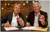 Per Vangekjær, Oldermand Københavns Malerlaug og formanden for Malernes fagforening Storkøbenhavn Bo Rosschou præsenterer ID-kortet, som får Dansk Byggeri til at se stjerner