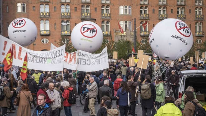 To af medlemmerne af Daglige Ledelse, som tæller vigtigste forbundsformænd plus LO’s valgte ledelse har dog udtrykt skepsis. Det skete i sidste uge, hvor en stribe fagforeninger sammen med græsrodsorganisationer havde kaldt til demonstration mod både CETA og den handelsaftale med USA, TTIP som er under forhandling.