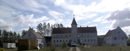 | Det er ikke kun småopgaver der udføres af underbetalt udenlandsk arbejdskraft. På godset i Lunderskov arbejder fire litauere for det blokaderamte firma, til venstre i baghaven skimtes skurvognen, hvor de er indkvarteret |